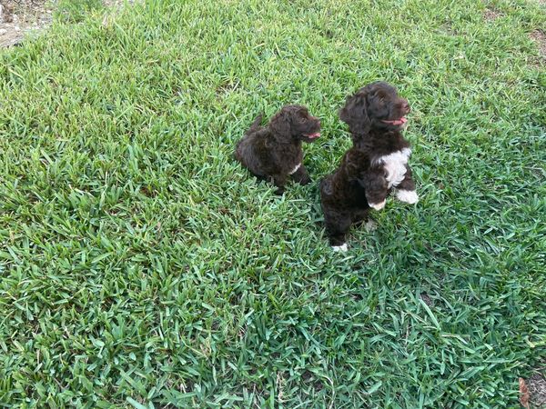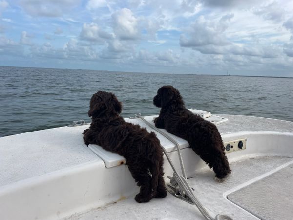 After several years of listening to our children beg for a dog, we finally took the leap and brought home a male Miniature Poodle for Christmas 2022. What we thought would be a family pet quickly turned into mom's favorite child. She was stingy and would not let anyone else hold him. She never imagined the love for a dog could be so strong! Eventually we realized that just one dog would not do, so we took our chances and brought home another puppy six months later. This time she was a Miniature Portidoodle. We knew the benefits of having a Poodle but being a boating family we were drawn to the Portuguese Water Dog (PWD). PWDs are very similar to Poodles in regards to their temperament, coat and build, and when we stumbled upon the Portidoodle we thought it would be the best of both worlds. And it was!! We could not believe our luck - we now had two absolutely perfect fur babies!